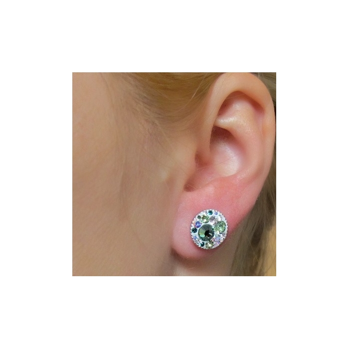 Náušnice jsou vyrobeny ručním vkládáním křišťálů Swarovski do speciálního gelu od firmy Swarovski, proto se usazení křišťálků může lišit, oproti fotografii. V těchto náušnicích jsou kombinovány různé barvy křišťálů, ale celkový efekt je tvořen do zelena. Barva křišťálků se na jednotlivých fotografiích může lišit z důvodu jiného úhlu dopadu světla na křišťál.