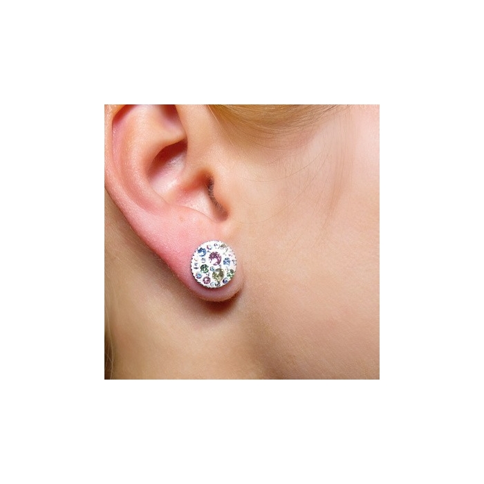 Náušnice jsou vyrobeny ručním vkládáním křišťálů Swarovski do speciálního gelu od firmy Swarovski, proto se usazení křišťálků může lišit, oproti fotografii. V těchto náušnicích jsou kombinované různé barvy křišťálů. Barva křišťálků se na jednotlivých fotografiích může lišit z důvodu jiného úhlu dopadu světla na křišťál. Křišťály se ve skutečnosti mnohem více třpytí než na fotografiích. Náušnice je možno kombinovat s prstenem a náhrdelníkem se stejným odstínem křišťálů.