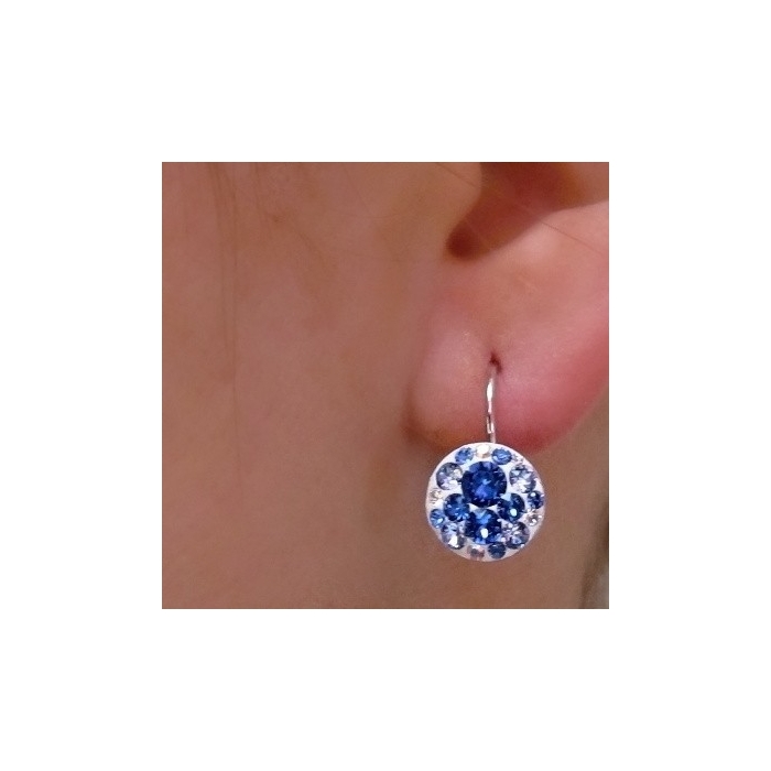 V těchto náušnicích jsou kombinované různé barvy křišťálů, ale celkový efekt je tvořen do modra. Barva křišťálků se na jednotlivých fotografiích může lišit z důvodu jiného úhlu dopadu světla na křišťál.
