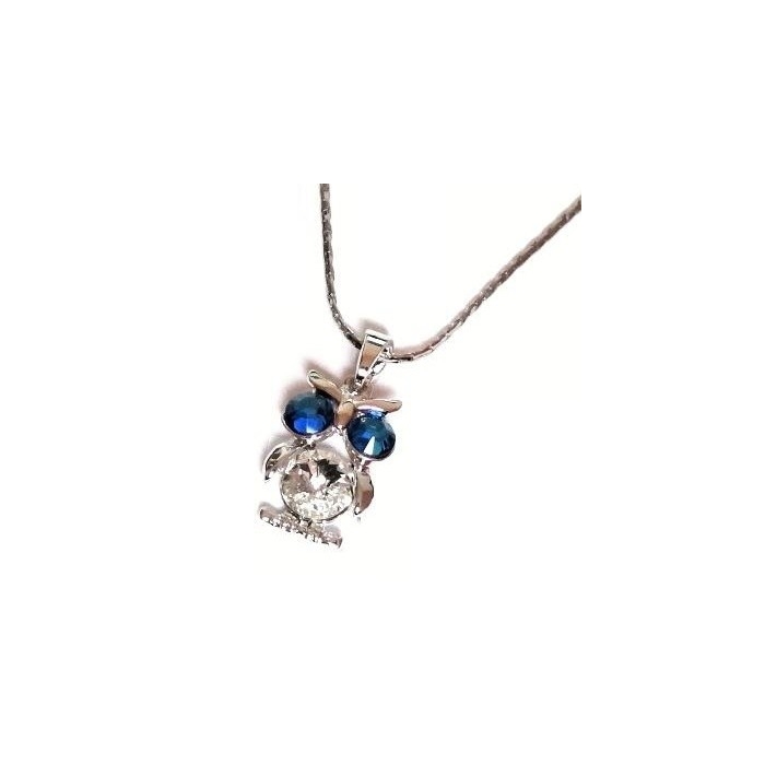 Náhrdelník SOVIČKA s čirým a modrými Swarovski křišťály, který je vyroben ze šperkařského obecného kovu (100% bez niklu), který je potažen velmi drahým kovem Rhodiem. Řetízek délky 45cm je taktéž upraven rhodiováním. Náhrdelník je dodáván v dárkové krabičce Swarovski Elements.