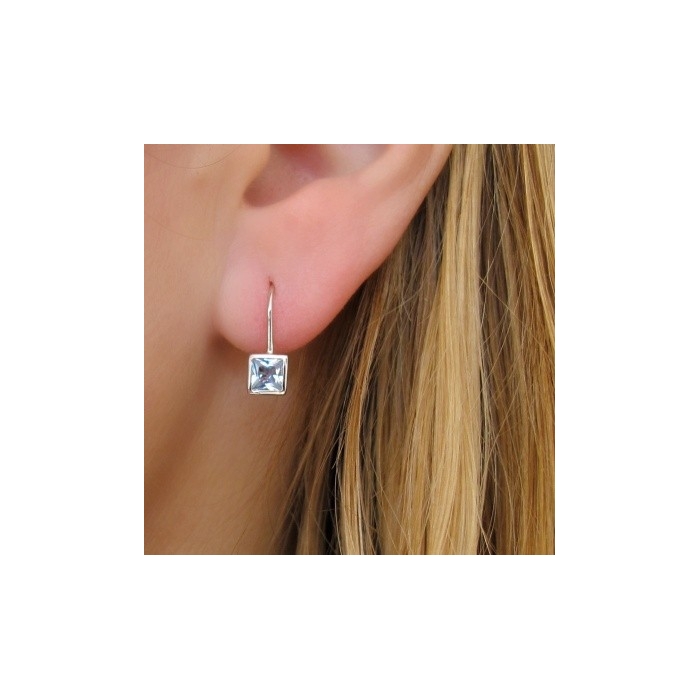 Stříbrné náušnice se světle modrým zirkonem 15mm Rhodium 1,40g
