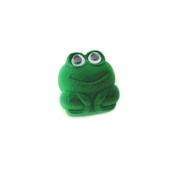 Dárková semišová krabička zvířátko Žabička s hýbajícíma očima. Krabička je vhodná k zabalení menších náušnic, přívěsku, nebo prstýnku.