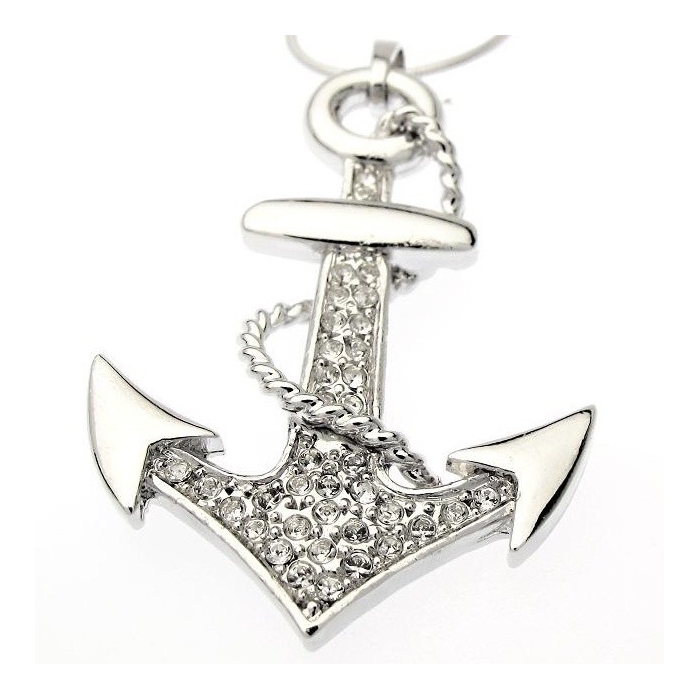 Náhrdelník s přívěskem velkou KOTVOU je osázená krásnými malými Swarovski® krystalky. Šperk je vyroben z obecného kovu bez niklu a je potažen velmi drahým kovem Rhodiem. Řetízek na kterém je kotva zavěšena je dlouhý cca 44cm a je taktéž potažen drahým kovem Rhodiem.
