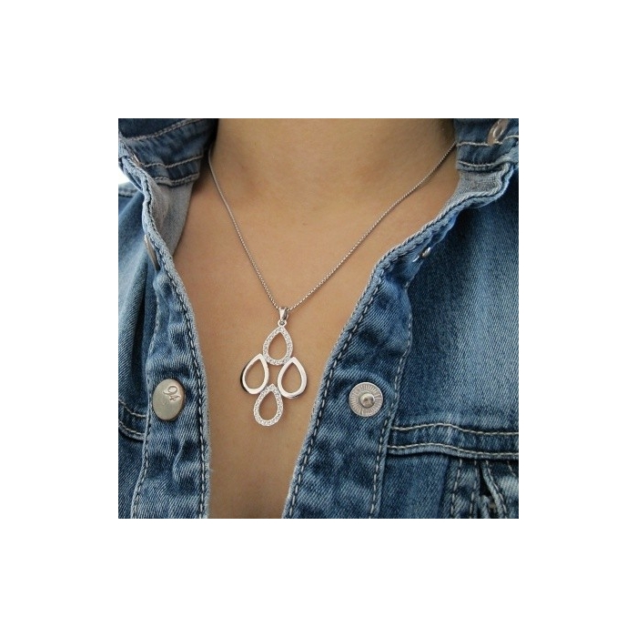 Náhrdelník s přívěskem čtyř kapek, znichž dvě jsou osázeny malými Swarovski krystalky. Šperk je vyroben z obecného kovu bez niklu a je potažen velmi drahým kovem Rhodiem. Řetízek na kterém je kotva zavěšena, je dlouhý cca 44cm a je taktéž potažen drahým kovem Rhodiem.