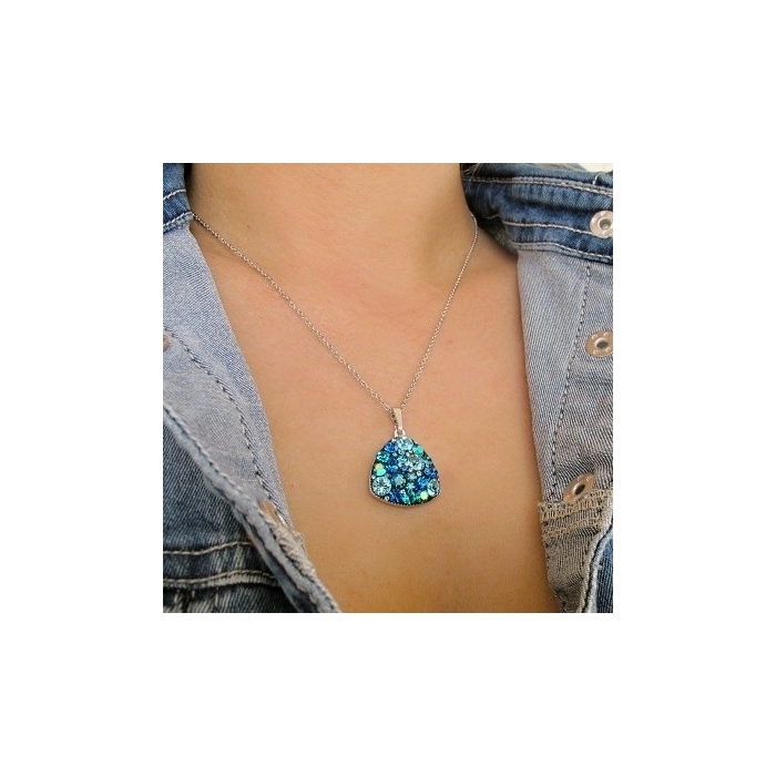 Náhrdelník Preciosa velký trojúhelník mix Rhodium - modrozelená