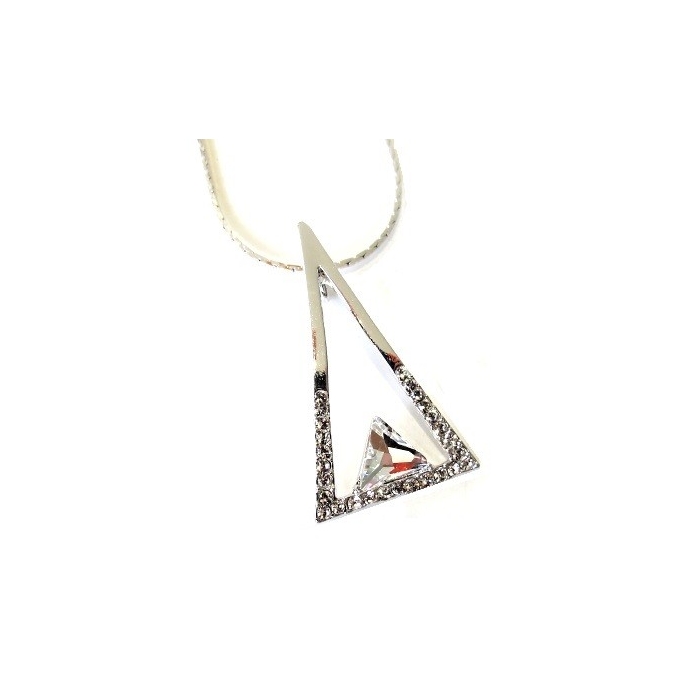 Náhrdelník TROJÚHELNÍK MAXI s čirýmI Swarovski® krystaly, který je vyroben ze šperkařského obecného kovu (100% bez niklu), a který je potažen velmi drahým kovem Rhodiem. Řetízek délky 45cm je taktéž upraven rhodiováním. Náhrdelník je dodáván v dárkové krabičce Swarovski® Elements.