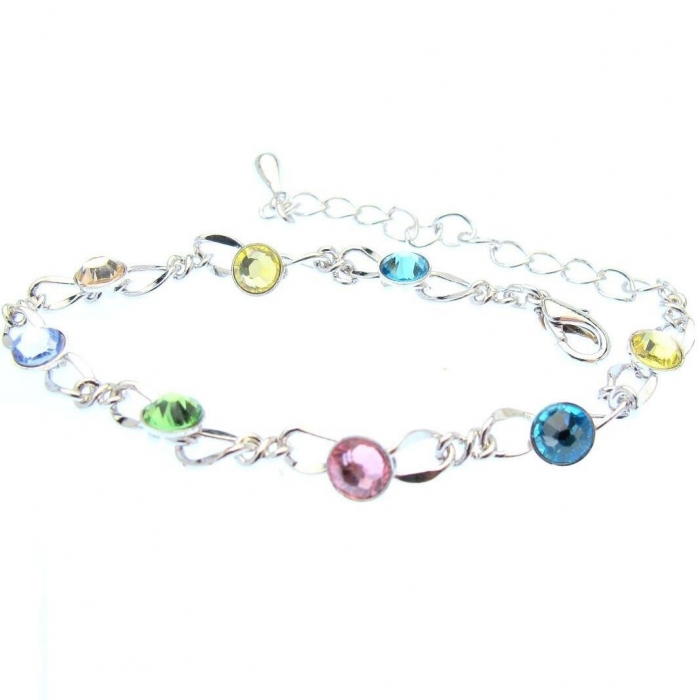 Řetízkovitý náramek s osmi různě barevnými křišťály Swarovski. Swarovski křišťály jsou upevněny na řetízku z ušlechtilého kovu s povrchovou úpravou velmi drahým kovem Rhodiem. Délka náramku je až 21,5cm (16+5,5cm s prodlužovacím řetízkem). Náramek je dodáván v dárkové krabičce Swarovski Elements.