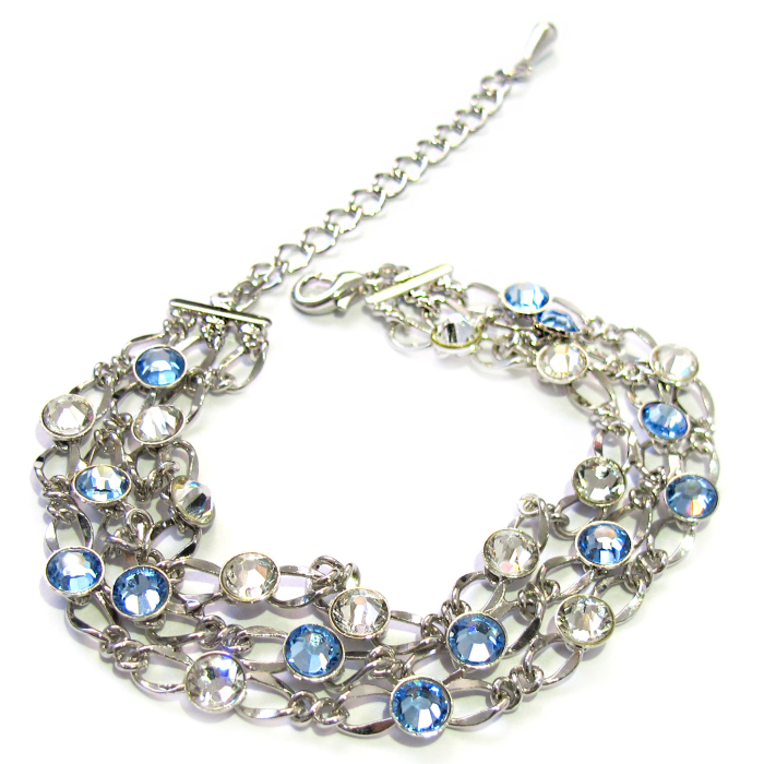 Náramek 3 řetízky Swarovski Crystal L.Sapphire Rhodium