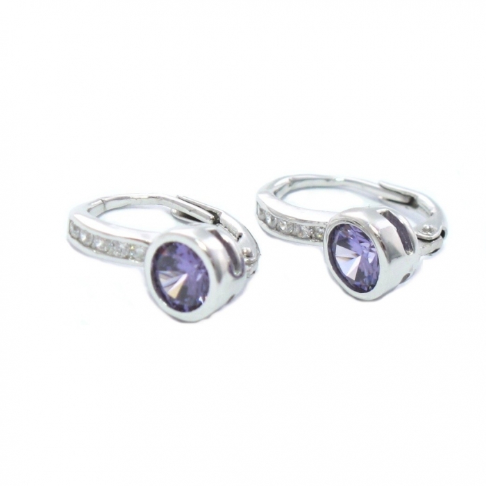 Stříbrné náušnice s čirými zirkony a fialovým zirkonem 17mm Rhodium