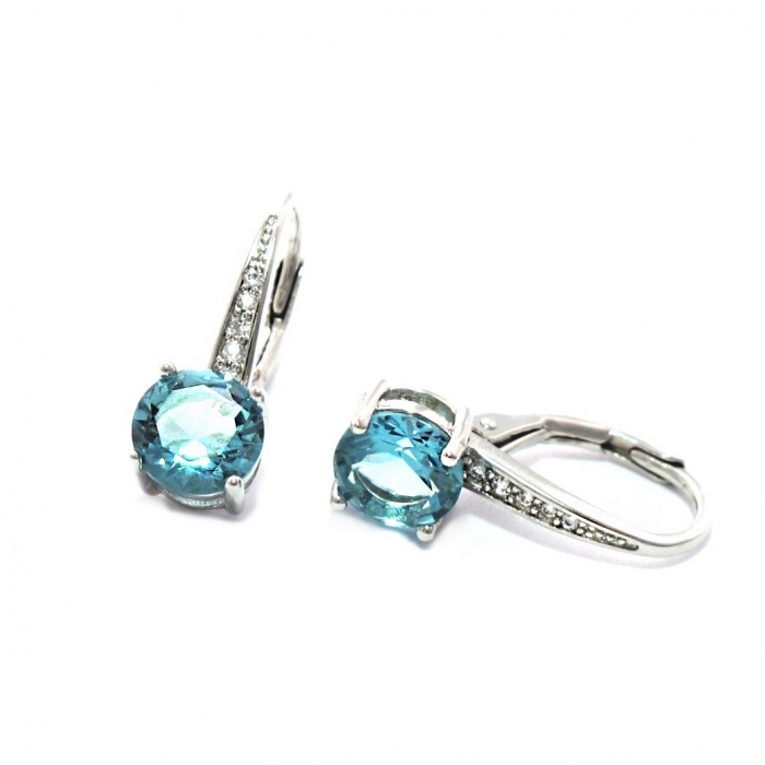 Stříbrné náušnice se světle modrým zirkonem čirými zirkony 20mm Rhodium