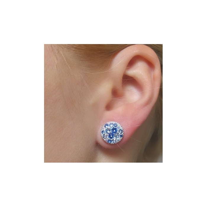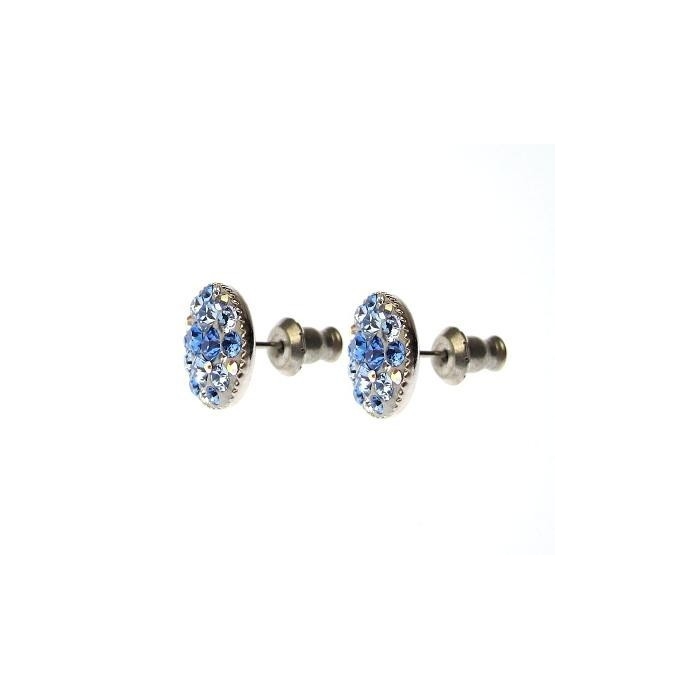 Náušnice jsou vyrobeny ručním vkládáním křišťálů Swarovski® do speciálního gelu od firmy Swarovski®, proto se usazení křišťálů může lišit jak ve velikosti křišťálů, tak v kombinaci, oproti fotografii. V těchto náušnicích jsou kombinované různé barvy křišťálů, ale celkový efekt je tvořen do modra.