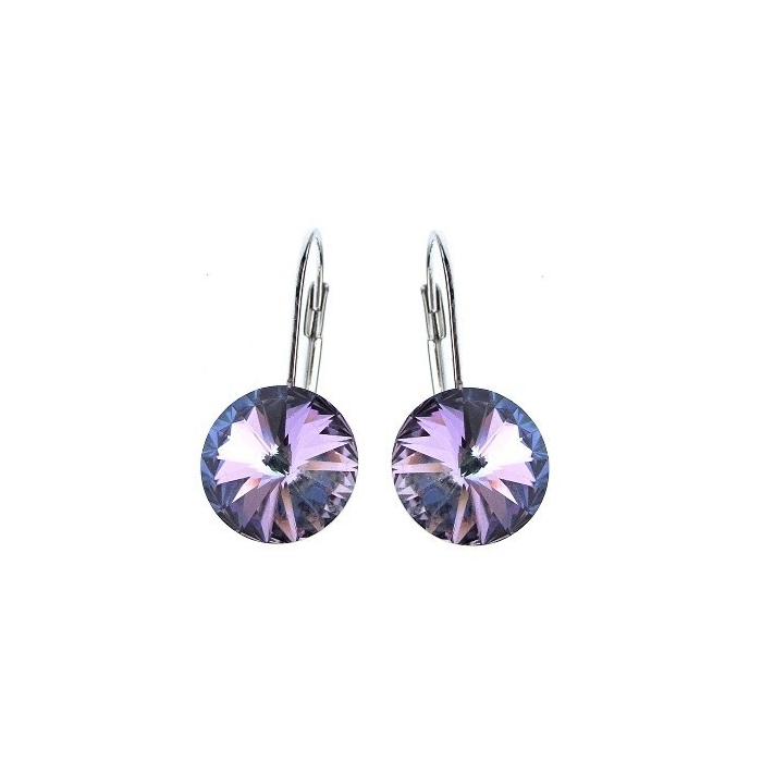 Dámské náušnice vyrobené z kvalitního šperkařského kovu (bez obsahu niklu) s original Swarovski křišťály ve fialové barvě. Tyto velmi oblíbené náušnice jsou navíc potaženy velmi drahým kovem Rhodiem, které je antialergické, dodává šperku krásný lesk a barvu bílého zlata, které se Rhodiem také upravuje. Náušnice můžete také doplnit o náhrdelník a prsten ve stejné barvě. Náušnice jsou dodávány v plastové krabičce na šperky.