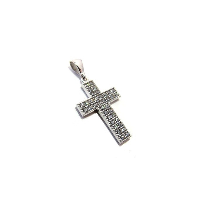 Zlatý přívěšek křížek z bílého zlata se zirkony 26mm 1,36g