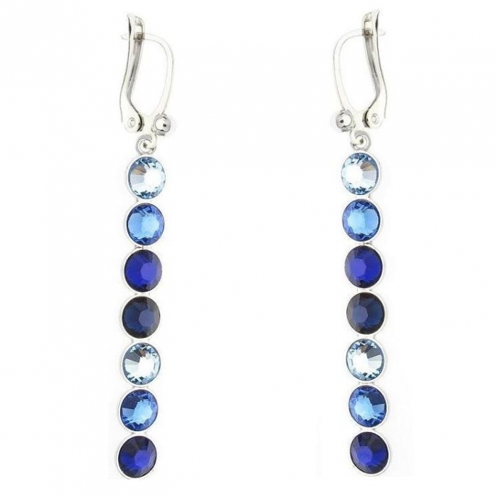 Náušnice se Swarovski křišťály v kombinaci odstínů modré. Náušnice jsou dlouhé 53mm a jsou potaženy tenou vrstvou velmi drahého kovu Rhodia.