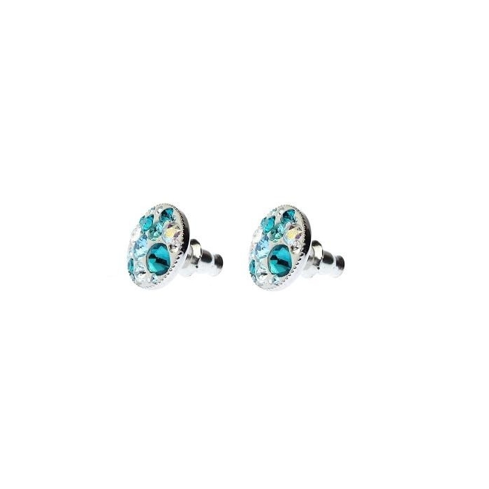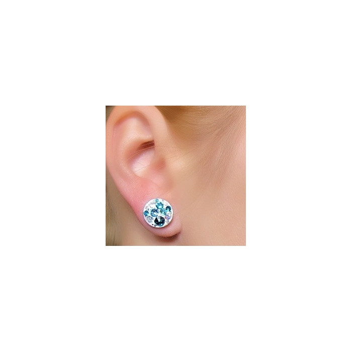 Náušnice jsou vyrobeny ručním vkládáním křišťálů Swarovski® do speciálního gelu od firmy Swarovski®, proto se usazení křišťálů může lišit jak ve velikosti křišťálů, tak v kombinaci, oproti fotografii. V těchto náušnicích jsou kombinovány různé barvy křišťálů, ale celkový efekt je tyrkysový.