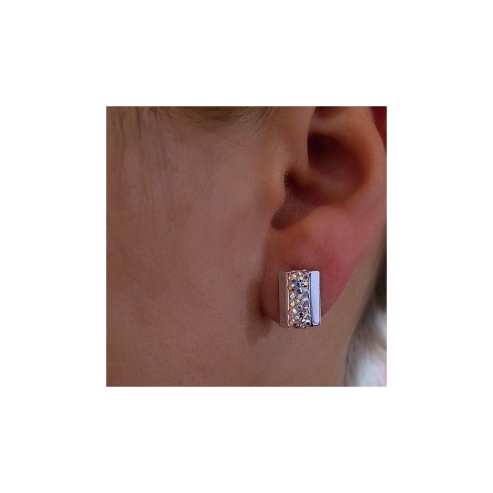 Náušnice obdélník Swarovski Crystal AB Rhodium