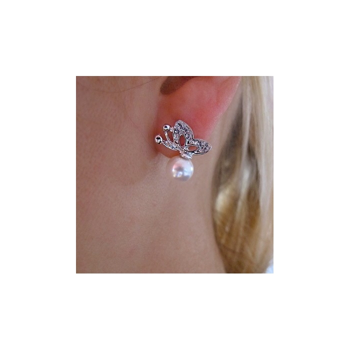 Náušnice MOTÝLEK PERLA se Swarovski křišťály Rhodium