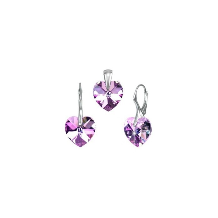 Klasická dámská stříbrná souprava s typickým brusem křišťálu Swarovski ve tvaru srdíček. Velmi jednoduché a milé provedení této stříbrné soupravy s vysokým třpytem křišťálů Swarovski Vás skvěle ozdobí a jsou vhodné pro každou přležitost. Vysoký lesk křišťálů Swarovski zaručuje, atraktivitu této krásné soupravy. Vyberte si z naší široké nabídky barevných provedení souprav s krystaly Swarovski.