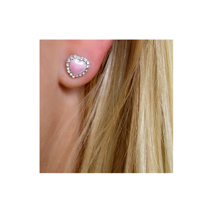 Náušnice růžové srdíčko s čirými Crystal Swarovski Rhodium