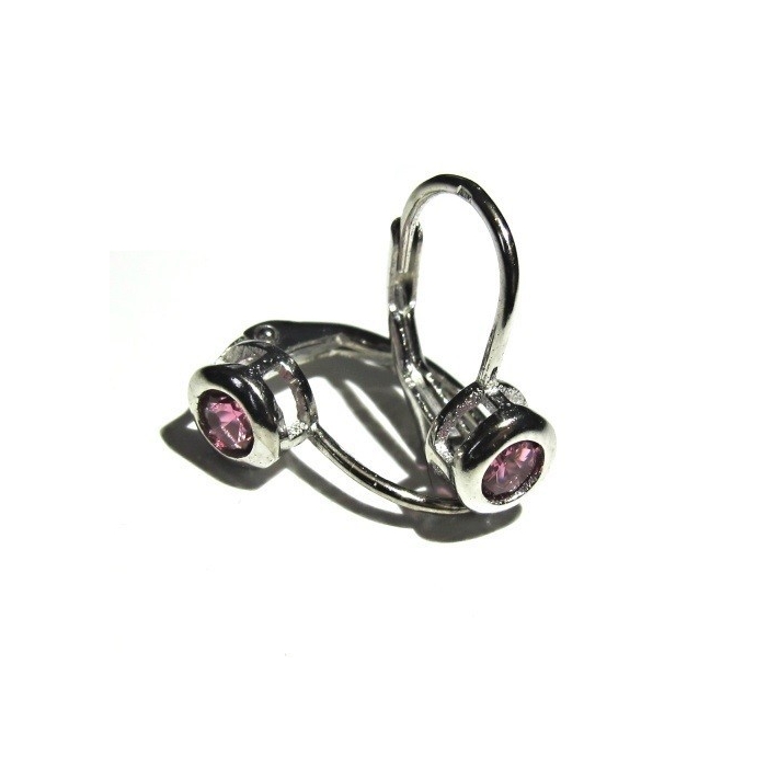 Stříbrné náušnice s červeno-růžovým zirkonem Rhodium