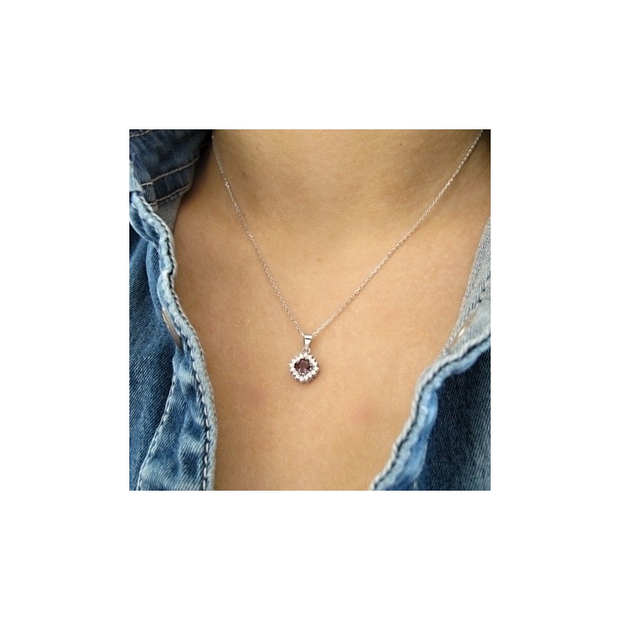 Osazení: Čiré zirkony a větší fialový zirkon uprostřed