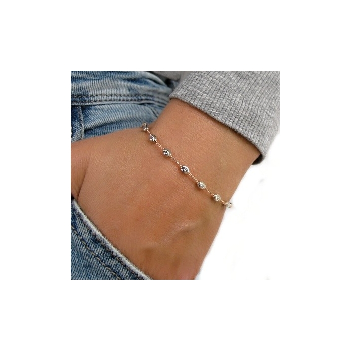 Stříbrný zlacený náramek s kuličkami 3,2mm Rhodium Bicolour