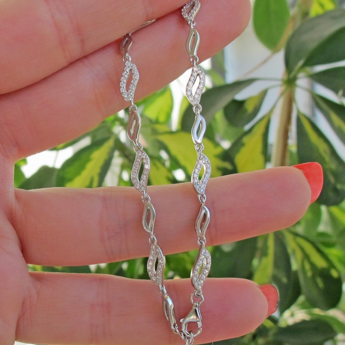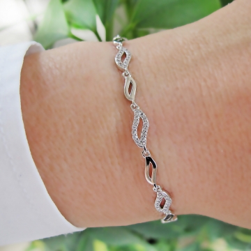 Luxusní stříbrný náramek VLNKY s čirými zirkony 4,05g Rhodium 17+3cm