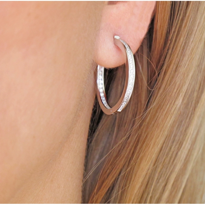 Stříbrné náušnice kruhy 24mm s čirými zirkony a pojistkou 5,10g Rhodium