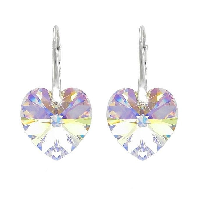 Stříbrné náušnice SRDCE Swarovski Elements 14mm Crystal AB