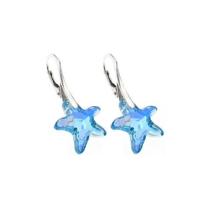 Stříbrné náušnice HVĚZDA Swarovski 16mm Aquamarine AB