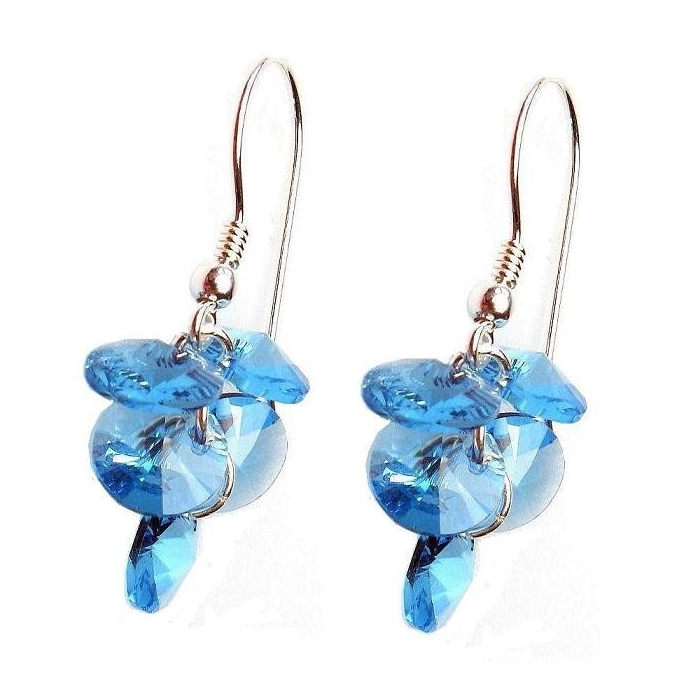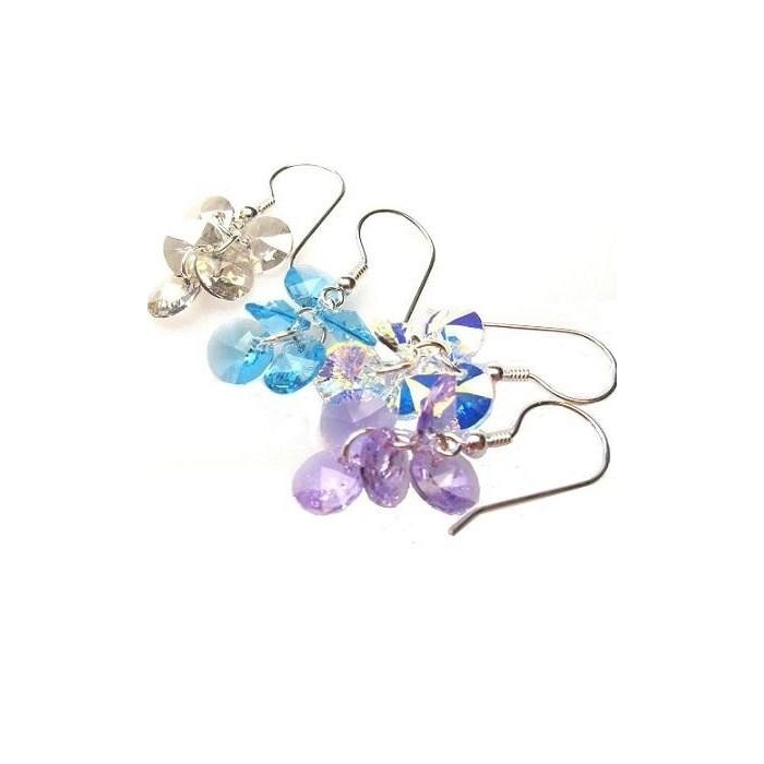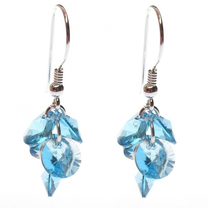 Krásné dámské stříbrné náušnice zdobené pěti Swarovski křišťály ve světle modré barvě. Náušnice jsou velmi zajímavé a velmi třpytivé, protože křišťálky Swarovski krásné odrážejí světlo. Tyto luxusní náušnice můžete doplnit i o třpytivý přívěsek ve stejné barvě křišťálu Swarovski. Prohlédněte si také tento typ náušnice v jiné barvě křišťálů - určitě si vyberete.