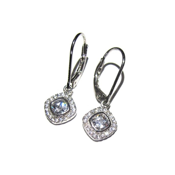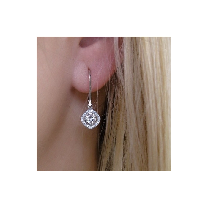 Stříbrné náušnice visací kosočtverec s čirými zirkony 25mm Rhodium