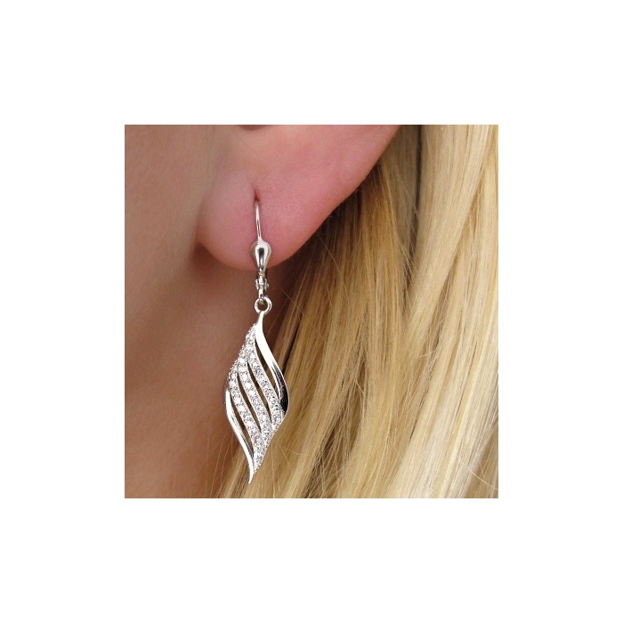 Luxusní dámské stříbrné náušnice zdobené s čirými zirkony 49mm 5,95g Rhodium