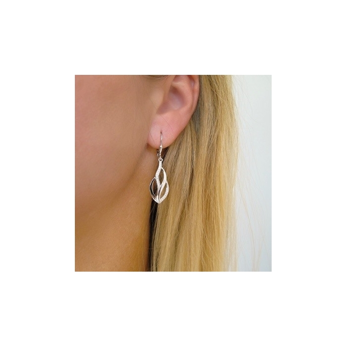 Stříbrné náušnice visací se zirkony 23mm Rhodium