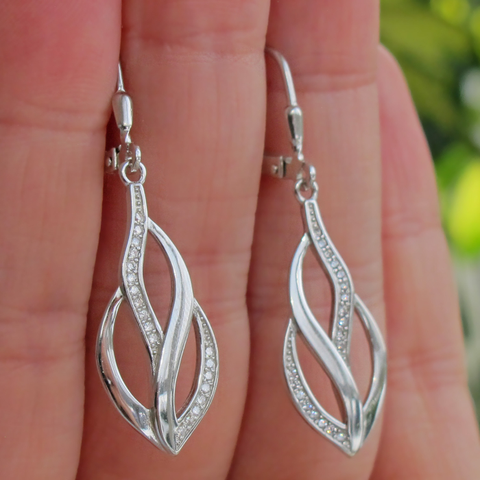Stříbrné náušnice visací Nekonečno se zirkony 32mm Rhodium