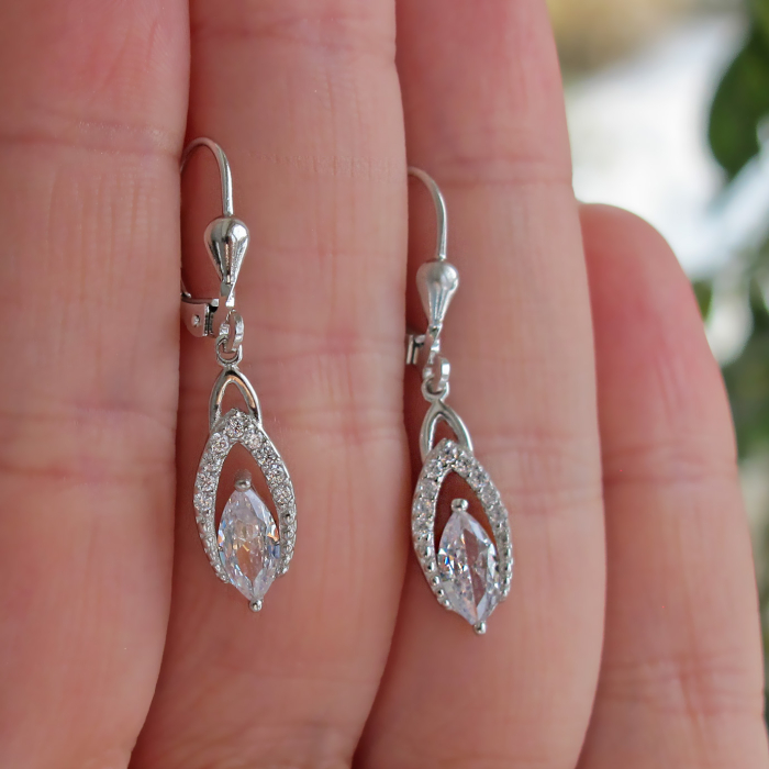 Dámské stříbrné náušnice s čirými zirkony 44mm 3,20g Cena 890 Kč Koupit Dostupnost: 2 KS skladem Popis náušnic: Materiál: Stříbro 925/1000 Hmotnost: 3,20g Délka náušnice: 44mm Šířka náušnice v nejširším místě: 10mm Tloušťka náušnice: 3,4mm Zapínání: Klasické na klapku Povrchová úprava - zušlechtění: Rhodiace - antialergická povrchová úprava, prodlužuje životnost šperku, dodává typickou barvu bílého zlata a zabraňuje zacházení šperku - oxidaci.