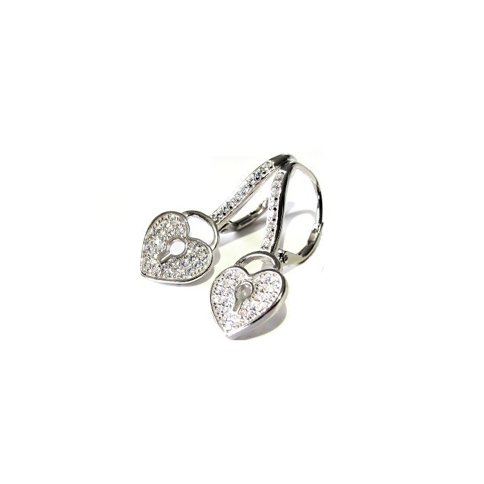 Stříbrné náušnice Srdce zámek se zirkony 29mm Rhodium 3,10g