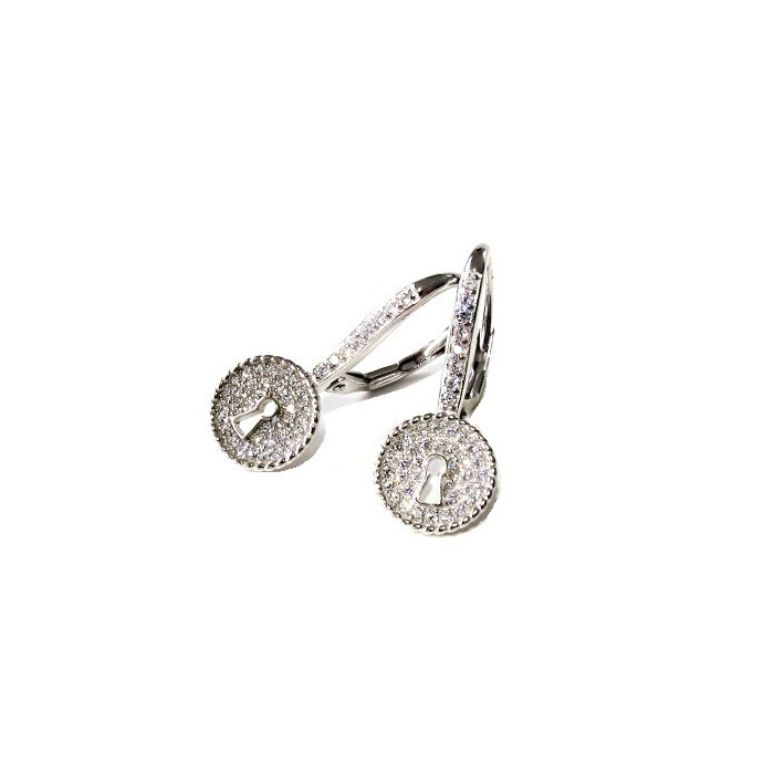 Stříbrné náušnice Kolečko zámek se zirkony 25mm Rhodium