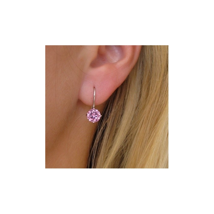 Stříbrné náušnice velký růžový zirkon Rhodium 2,65g