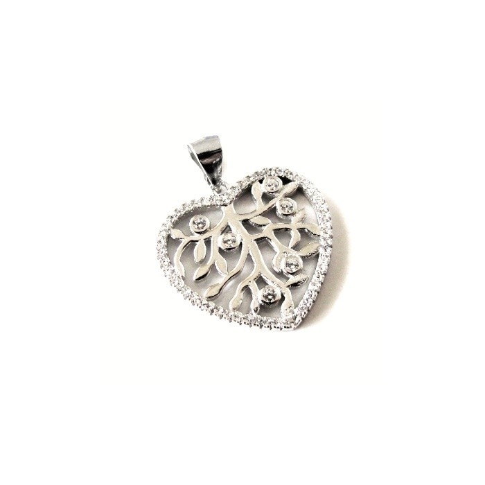 Stříbrný přívěsek srdce se zirkony 26mm Rhodium