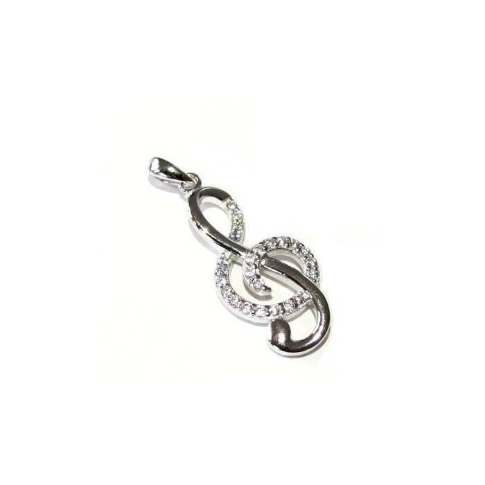 Stříbrný přívěsek HOUSLOVÝ KLÍČ se zirkony 30mm Rhodium
