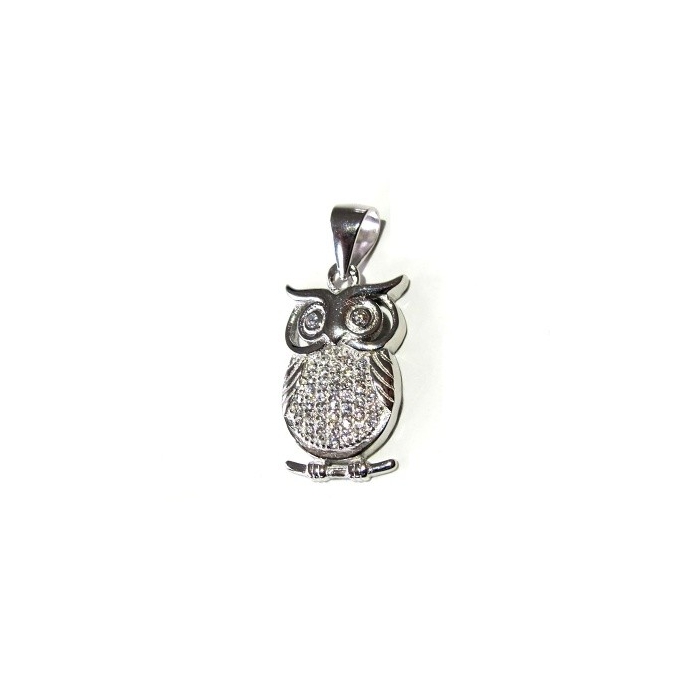 Stříbrný přívěsek SOVIČKA se zirkony 18mm Rhodium
