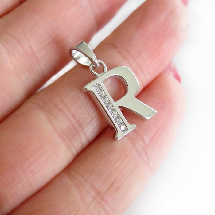 Stříbrný přívěšek písmeno "R" 22mm se zirkony 2,05g Rhodium