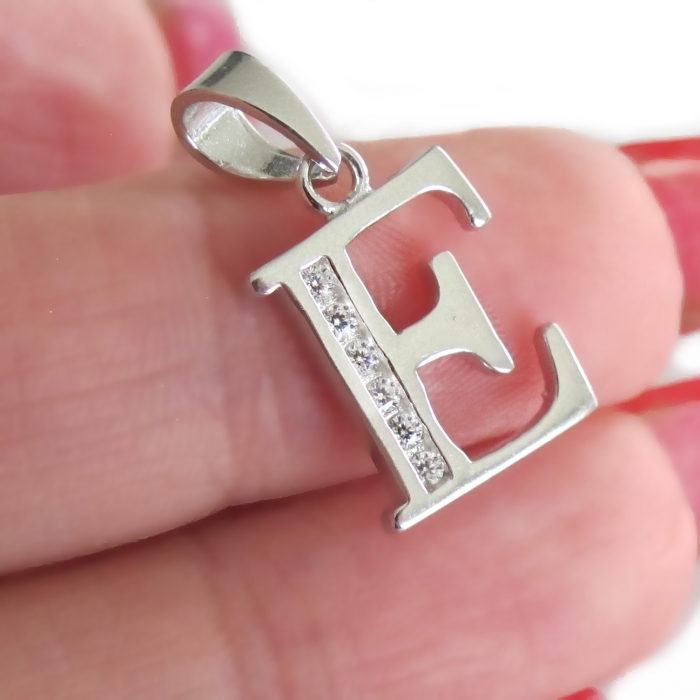 Stříbrný přívěšek písmeno "E" 23mm se zirkony 1,75g Rhodium