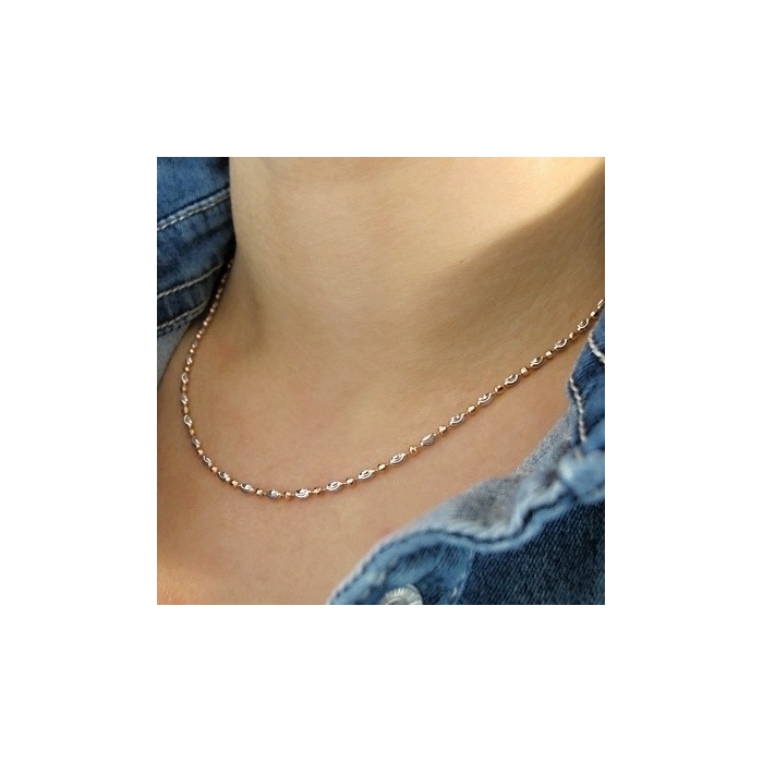 Stříbrný náhrdelník z malých kuliček a oválků 2mm Rhodium 5,15g Bicolour 50cm