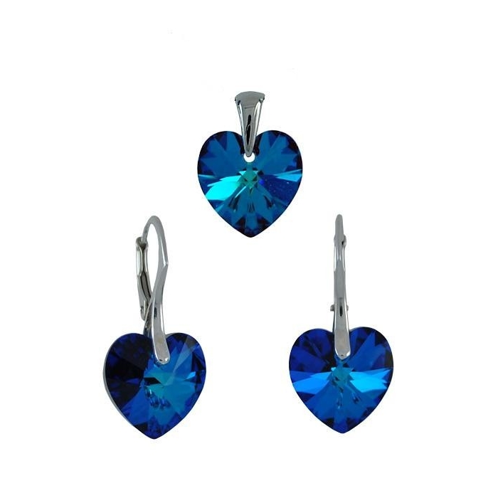 Stříbrná souprava SRDCE Swarovski 10mm Bermuda Blue