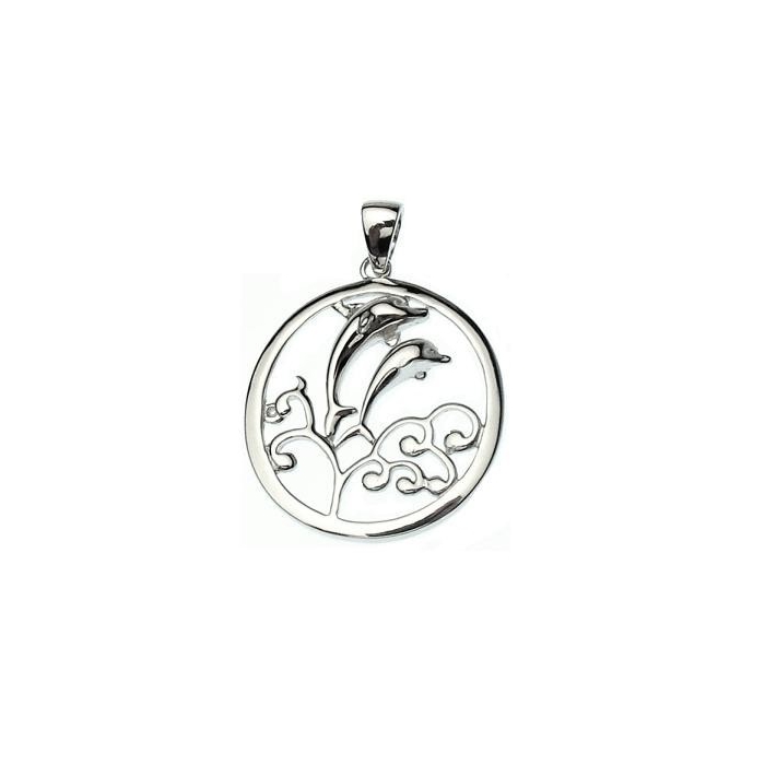 Stříbrný přívěsek oválek s delfínky celostříbrný rhodiovaný