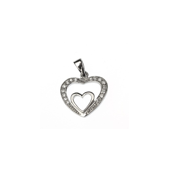 Stříbrný přívěsek srdíčka se zirkony Rhodium