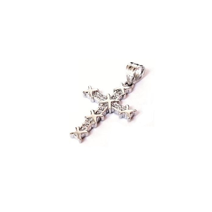 Stříbrný přívěsek křížek 21mm se zirkony Rhodium
