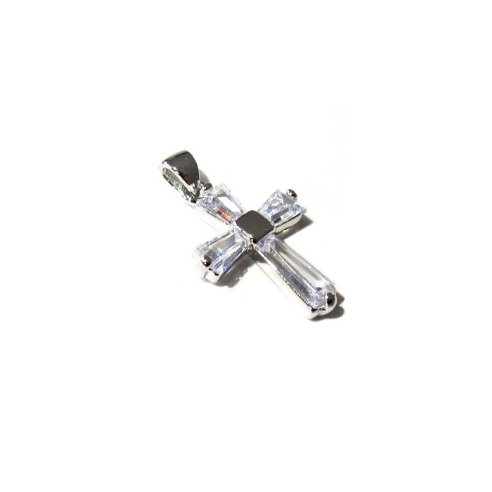 Stříbrný přívěsek KŘÍŽEK zirkonový 20mm Rhodium